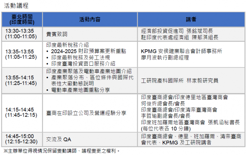 | 活動名稱 | 印度台商線上投資說明會 |
