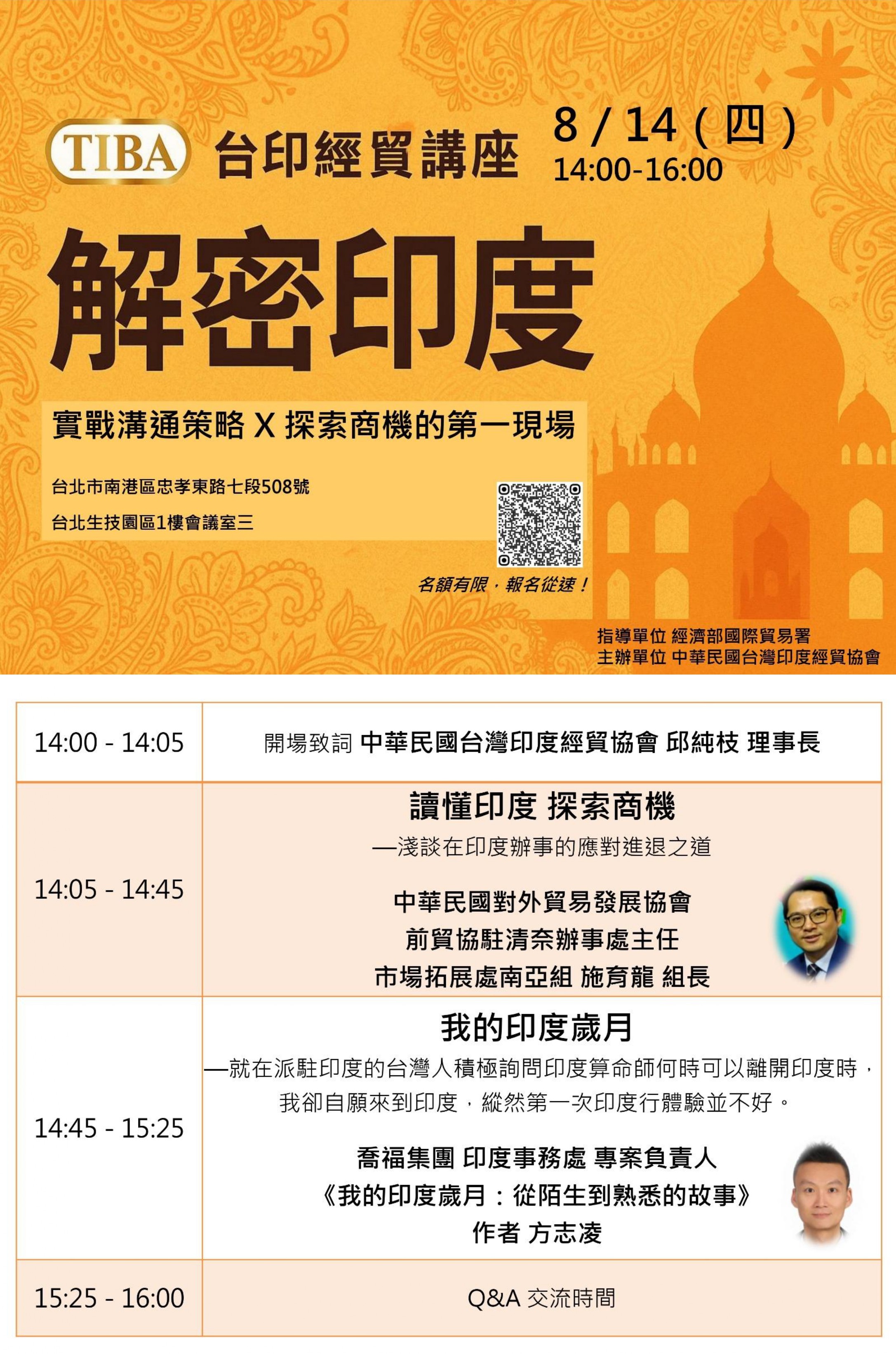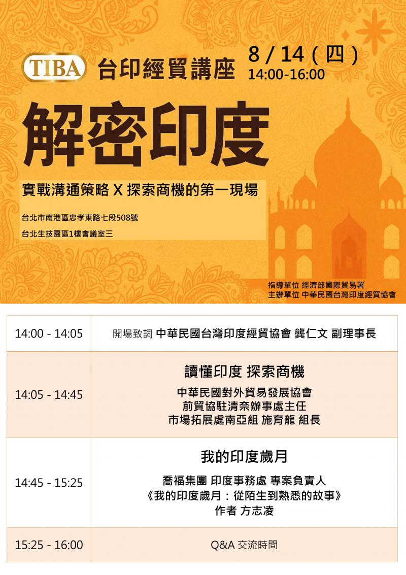 | 活動名稱 | 【台印經貿講座】解密印度--實戰溝通策略X探索商機的第一現場 |